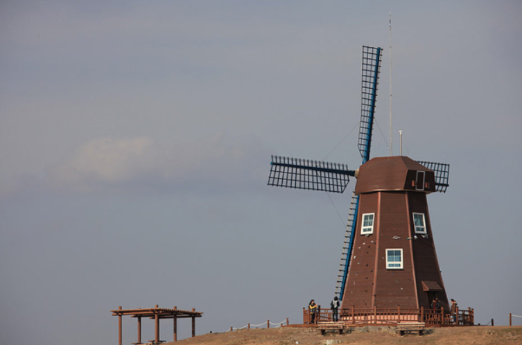 바람의 언덕에는 이곳의 상징인 풍차가 있는데요. 마치 네덜란드에 온 것 같은 느낌을 주고 있습니다. 나지막한 언덕이지만 이곳에 올라서 바다를 바라보면서 불어오는 시원한 바람을 느끼실 수 있습니다.