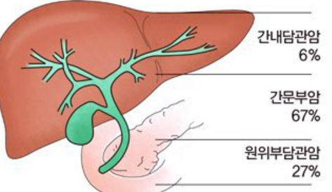 간외 단도암은 발생 부위에 따라서 상부, 중부, 하부 담도암으로 분류하고 이중 상부 담도암을 전체 담도암의 50% 이상을 차지하고 있으며 나머지 담도암은 비슷한 차지율을 보이고 있습니다.