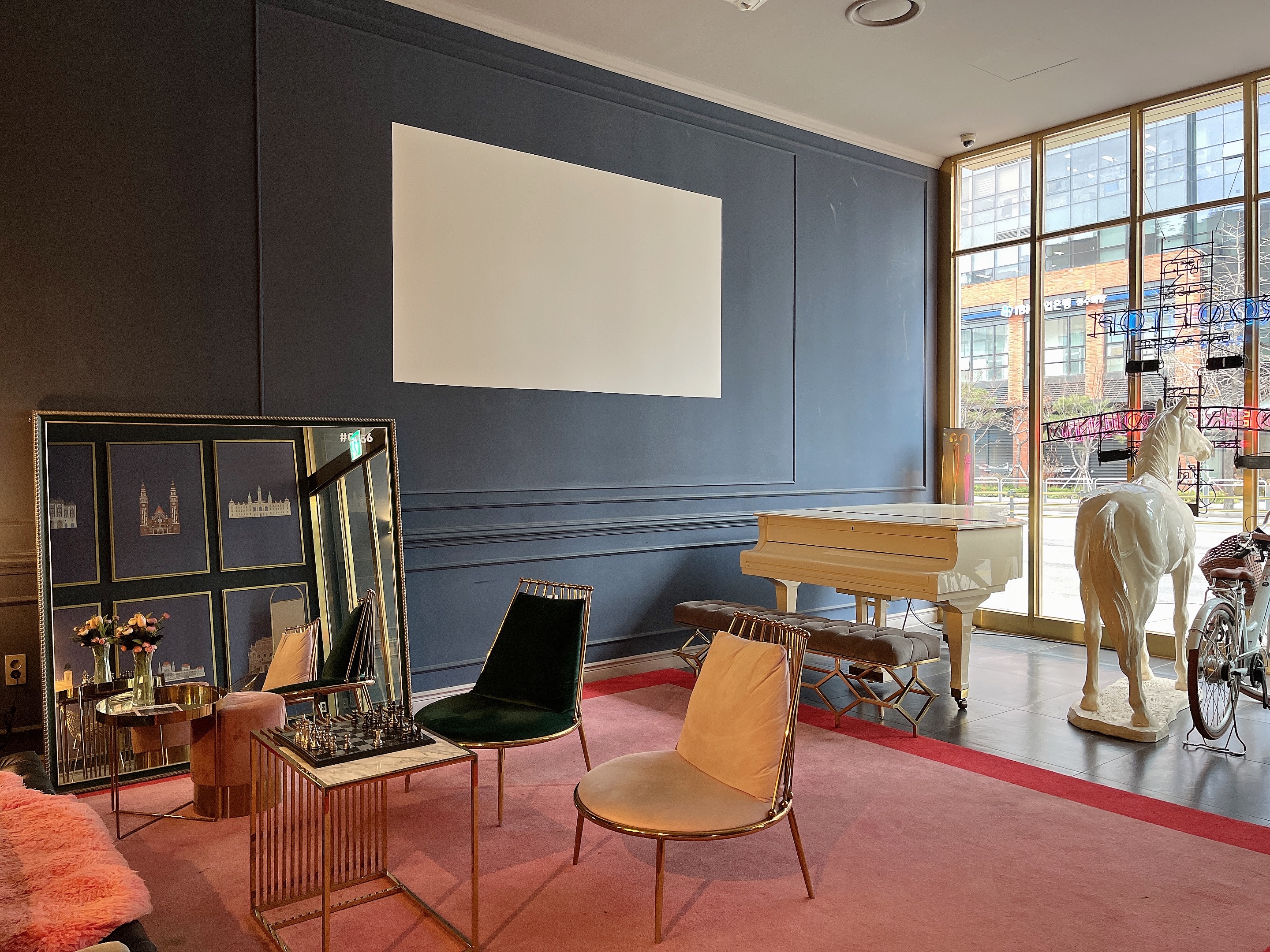 무엇보다도 에이치에비뉴호텔 건대점은 감각적인 인테리어가 숙박객의 눈길을 사로잡기 충분한데요. 영화 그랜드 부다페스트 호텔에서 영감을 받았다고 합니다.