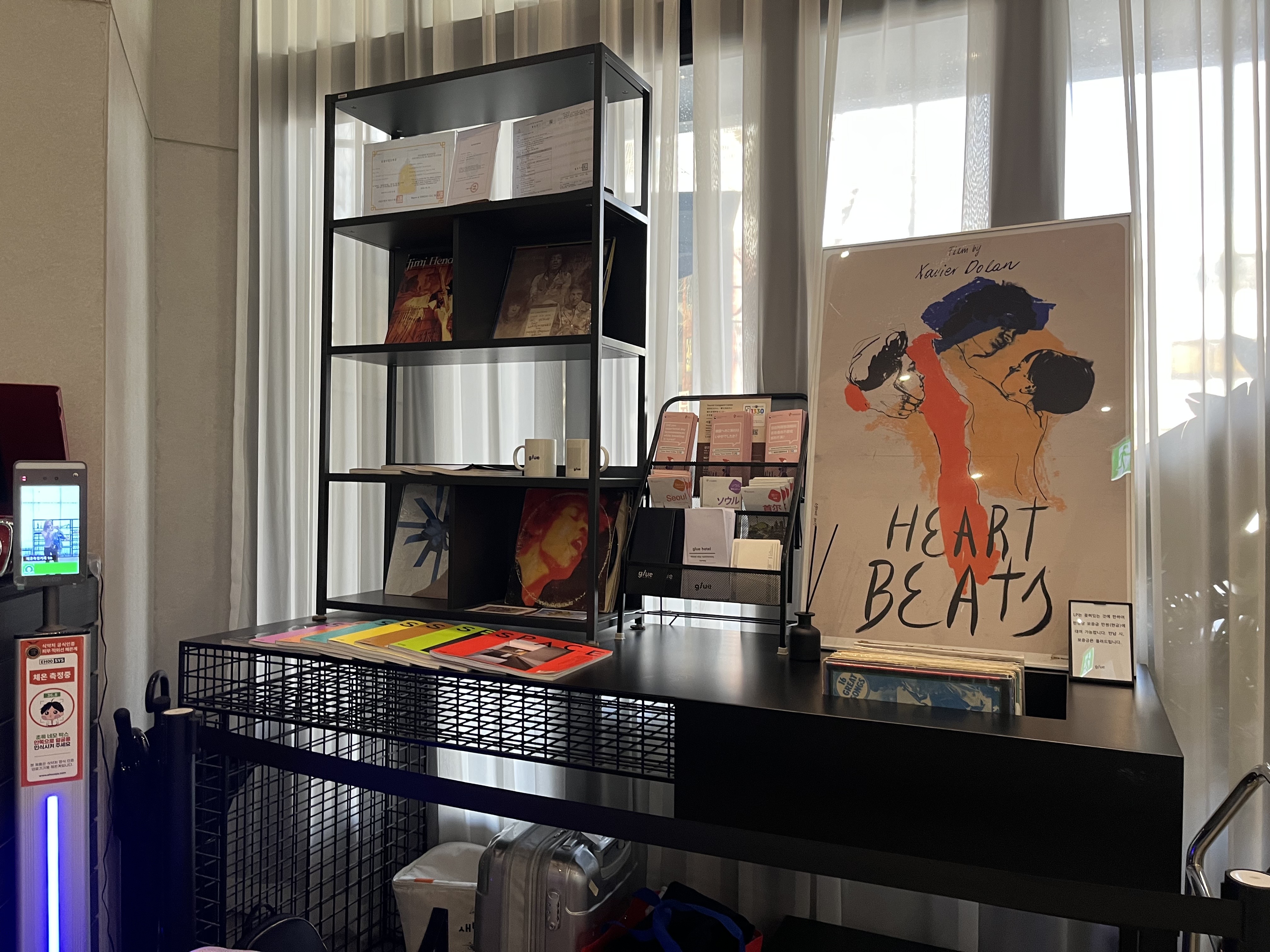 굉장히 깔끔하고 정돈이 잘 되어 있으며, LP 플레이어도 있어서 프런트에서 LP판을 대여해서 음악도 감상하실 수 있습니다. 1층에 와인도 저렴한 가격에 판매하고 있어서 음악과 함께 와인을 즐겨보시는 것도 너무 좋을 것 같네요.