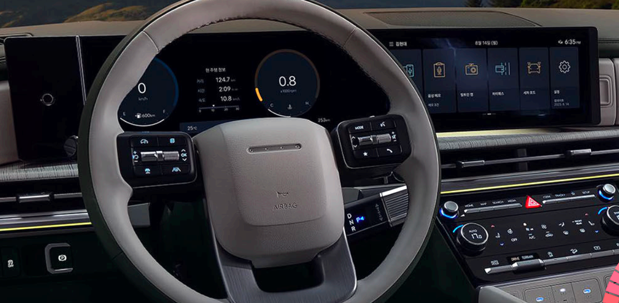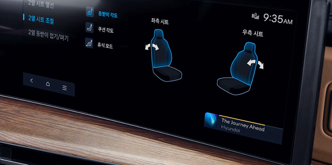 싼타페 하이브리드 실내는 12.3 인치 디지털 계기판과 12.3 인치 인포테인먼트 시스템, 전자식 변속기(SBW) 등 다양한 최신 편의사양을 갖추고 있습니다. 특히 2열 좌석과 3열 좌석이 있는 7인승 모델과 2열 좌석이 2개로 나뉘어진 6인승 모델이 있습니다.