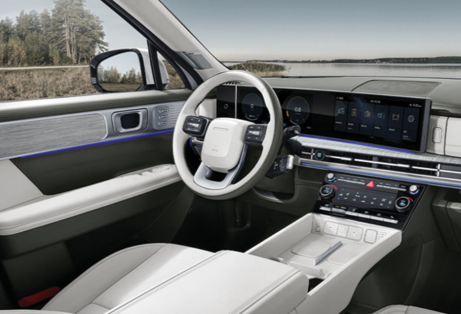 싼타페 하이브리드 실내는 12.3 인치 디지털 계기판과 12.3 인치 인포테인먼트 시스템, 전자식 변속기(SBW) 등 다양한 최신 편의사양을 갖추고 있습니다. 특히 2열 좌석과 3열 좌석이 있는 7인승 모델과 2열 좌석이 2개로 나뉘어진 6인승 모델이 있습니다.