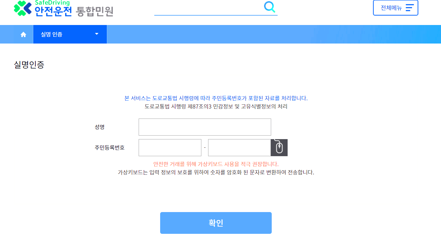 다음으로 아래와 같이 실명 인증을 합니다.