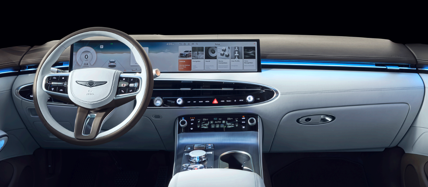 27인치 OLED 통합형 와이드 디스플레이는 하나의 파노라믹 디스플레이로 합쳐진 클러스터와 인포테인먼트 시스템이 대시보드 위로 와이드하게 펼쳐지면서 미래지향적이면서도 고급스러운 분위기를 연출하고 있습니다.