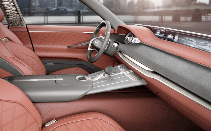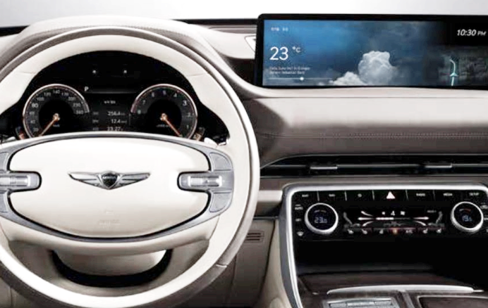 실내 디자인은 그야 말로 섬세한 디테일과 하이테크의 조화로운 감성 공간이라고 할 수 있겠습니다. 27인치 OLED 통합 디스플레이를 갖추고 있는데요, 이는 클러스터와 내비게이션 화면을 하나의 파노라믹 디스플레이로 연결해, 볼드하면서 하이테크한 실내 이미지를 강조하고 있습니다.