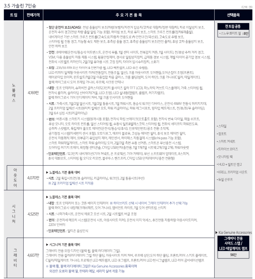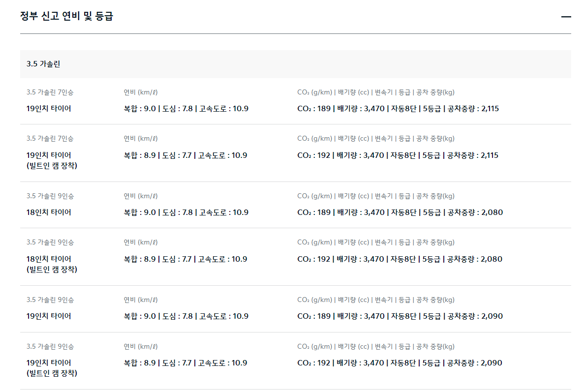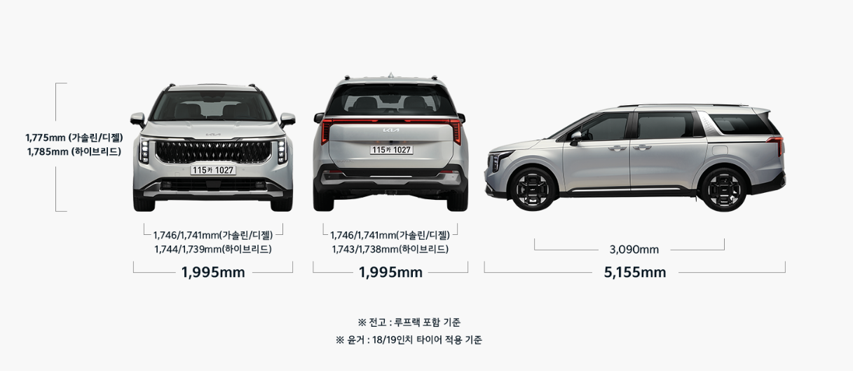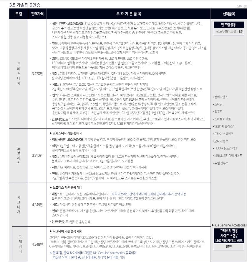 또한 3.5L 가솔린 9인승은 3470만 원에서 4405만 원이고, 2.2 L 디젤 9인승은 3665만 원에서 4600만 원 사이입니다.