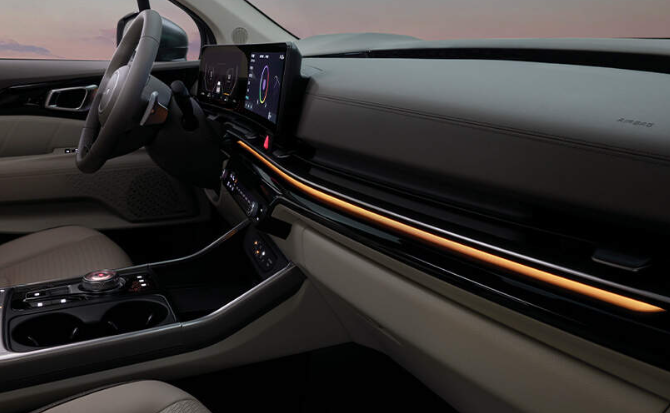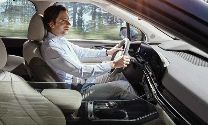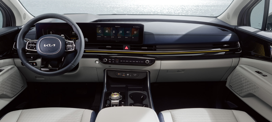 파노라믹 커브드 디스플레이 시스템으로 12.3인치 클러스터와 인포테인먼트 시스템을 하나의 화면처럼 연결시킨 통합형 디스클레이로 기아의 차세대 인포테인먼트 시스템이 적용되어 있습니다.