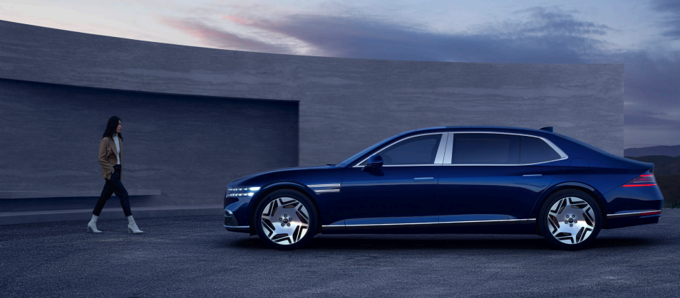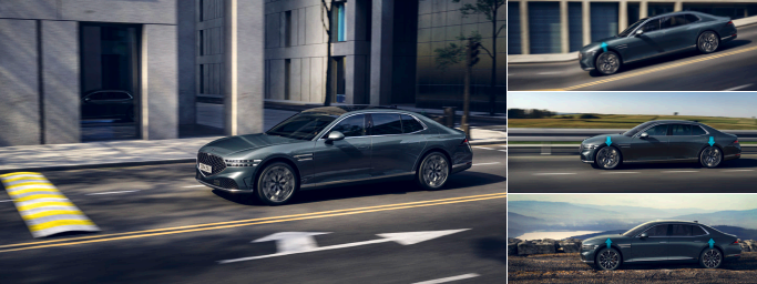 외관은 제네시스의 시그니처 디자인 요소인 크레스트 그릴과 날렵한 듀얼 LED 헤드램프로 우아함과 현대적인 이미지를 동시에 보여줍니다. 차체는 길이 207.7인치(5,276mm), 폭 76인치(1,930mm)로, 넉넉한 실내 공간을 제공합니다.