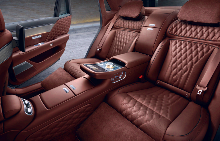실내 디자인은 최상급 나파 가죽 시트, 천연 우드 트림, 앰비언트 라이트 등 고급 소재로 마감되었습니다.